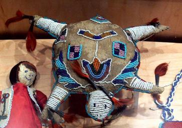| Keywords: Cheyenne turtle amulett by Standing Elk 1898.jpg Cheyenne turtle amulett tanned hide glass beads tin cones horsehair by arist Standing Elk 1898; given to the Ursuline sisters of Great Falls Montana as a gift <br />The Women's Museum Dallas Texas special exhibit Women Spirit Catholic Sisters in America 2009-2010 own 2009-10 Photo User FA2010 The Women's Museum Dallas Cheyenne 1898 in art Beadwork Turtles in art | ||||