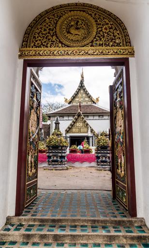 Keywords: chiang mai thailand temple doorway travel religion culture ancient worship religious