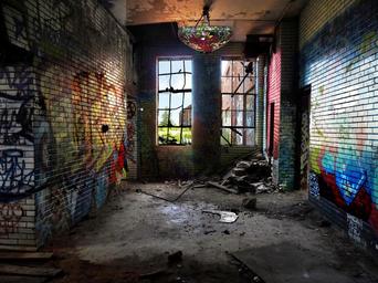 Keywords: chicago urban tiffany graffiti art windows reflection