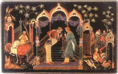 Keywords: Chichikov visiting Manilov (Salabanov).jpg ru Чичиков у анилова Шкатулка 1935 Ивановский ОХ 1935 http //palekh narod ru/win/salab_vm htm Василий ихайлович Салабанов 1902 1941 other versions Custom license marker 2016 01 26 PD-Old-70 Vasily Salabanov Palekh Miniature Dead Souls |
