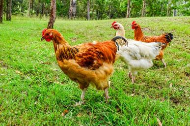 Keywords: chicken poultry farm grass bird hen animal beak livestock fowl feather meadow farming rooster pasture range meat domestic chick wings rural field green organic