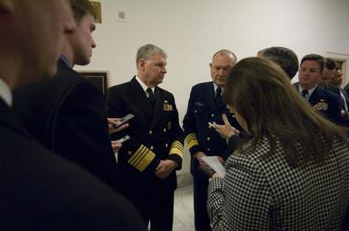 | Keywords: Chief of Naval Operations 071213-N-FI224-207.jpg en Commandant of the Marine Corps Gen James T Conway Chief of Naval Operations CNO Adm Gary Roughead and Commandant of the Coast Guard Adm Thad W Allen appear before the House Armed Services Committee to give testimony and answer questions concerning the unified maritime strategy The strategy The Cooperative Maritime Strategy for 21st Century Seapower seeks to use the assets of all three of the nations maritime services to achieve a balance of peacetime engagement and major combat operation capabilities to include forward presence deterrence sea control power projection maritime security and human assistance and disaster response U S Navy photo by Mass Communication Specialist 1st Class Tiffini M Jones Released <br>Unit Defense Imagery Management Operations Center 2007-12-13 Tiffini Vanderwyst Jones https //www dvidshub net/image/824696/chief-naval-operations 071213-N-FI224-207 2013-02-01 06 40 ARLINGTON VA US PD-USGov-Military-Navy Photographs by Defense Video and Imagery Distribution System Gary Roughead in 2007 James T Conway in 2007 Images from DoD uploaded by Fæ |