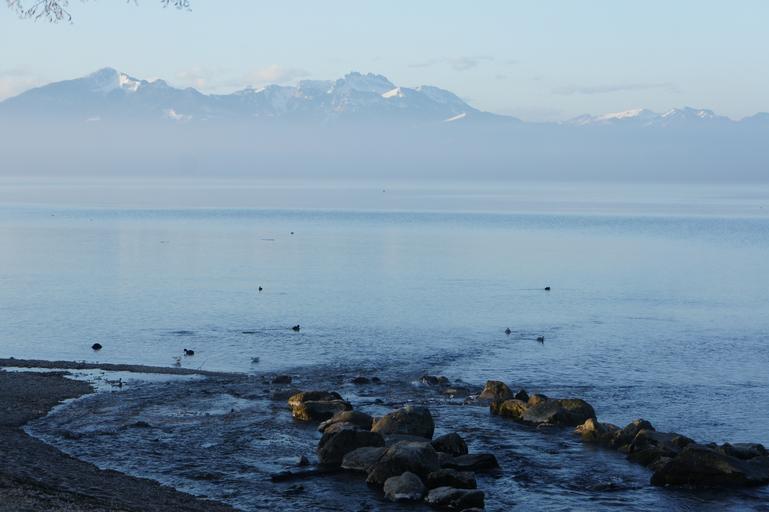 Keywords: chiemsee mood lake water mountains snow winter wet bank nature landscape mountain landscape idyll rest morning