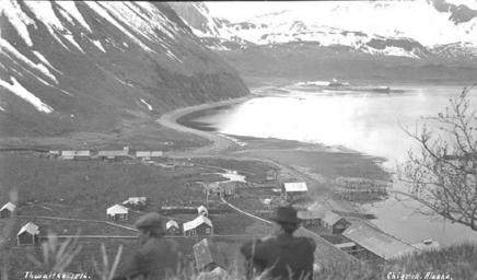 | Keywords: Chignik, bird's-eye view , ca 1912 (THWAITES 205).jpeg check categories 27 October 2016 2 Photograph Creator John E Thwaites Caption on image Chignik Alaska PH Coll 247 400<br/>The City of Chignik is located on Anchorage Bay on south shore of the Alaska Peninsula 450 miles southwest of Anchorage and 260 miles southwest of Kodiak Prior to Chignik a Kaniagmuit Native village called Kaluak was located here; it was destroyed during the Russian fur boom in the late 1700s Chignik a Sugpiaq word meaning big wind was established in the late 1800s as a fishing village and cannery A four-masted sailing ship called the Star of Alaska transported workers and supplies between Chignik and San Francisco Chinese crews from San Francisco traveled to Chignik in early spring to make tin cans for the cannery Japanese workers followed in mid-June to begin processing A post office was established in 1901 Coal mining occurred from 1899 to 1915 Chignik became an incorporated City in 1983 Today two historical canneries are still in operation Subjects LCTGM Chignik Alaska ; Anchorage Bay Alaska ; Men--Alaska--Chignik; Cities towns--Alaska; Bird's-eye view prints depicted place Chignik Alaska ca 1912 Institution University of Washington UWASH-THWAITES-source accession number thwaites 205 PD-old-auto-1923 1940 Information field Order Number THW208 Images from the John E Thwaites Photographs of Alaska Collection to check Chignik Alaska Men |