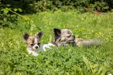 Keywords: chihuahua dog puppy baby play chiwawa young cute small small dog young dog meadow rush grass father daughter