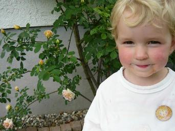 Keywords: child blond joy face head smile smeared
