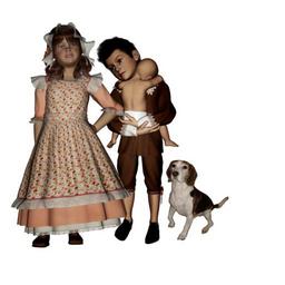 Keywords: child boy baby girl brothers and sisters dog pretty cute dreamy awakened responsibility love trust detention protect forward child's hand affection root human family