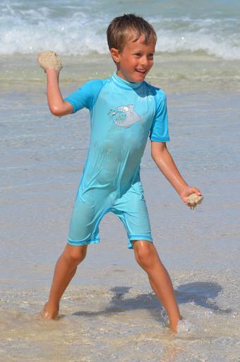 Keywords: child boy fun play sea people uv-resistant clothing throw