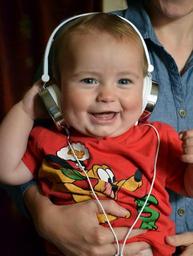 Keywords: child boy toddler music laughing laughter happy smile smiling family youngster young headphones families portrait photo photography