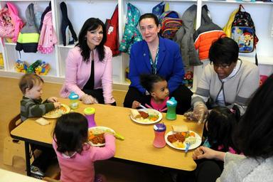 | Keywords: USDA, Food and Nutrition Service Mid-Atlantic Region Deputy Administrator Diana Limbacher and New Jersey Department of Agriculture Director of the Division of Food and Nutrition Director Rose Tricario joined staff of Monmouth Day Care Center in Red Bank March 14, 2016 to celebrate Child and Adult Care Food Program Week. Monmouth Day Care Center feeds 120 infant through school-aged children breakfast, lunch and afternoon snack each day through the Child and Adult Care Food Program. The CACFP provides meals and snacks to 85,593 eligible participants at 1,835 shelters, day care centers, family day care homes, after-school care programs and adult day care centers under the sponsorship of more than 600 New Jersey institutions. The program is federally funded and administered by the New Jersey Department of Agriculture. (USDA photo by Armando Vasquez/Released)