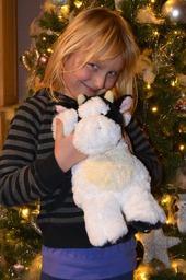 Keywords: child christmas people girl stuffed animal happy cow