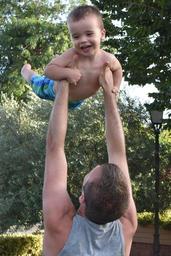 Keywords: child fun people laugh merry man father lift raise joy fatherhood toddler nursery lifting connectedness