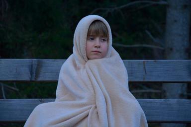 Keywords: child girl blanket evening freeze alone lonely thoughtful sad miss cold