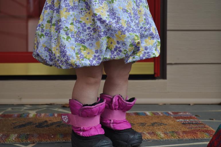 Keywords: child girl cute pink waiting rain boots rainy day seasons contrast feminine motherhood