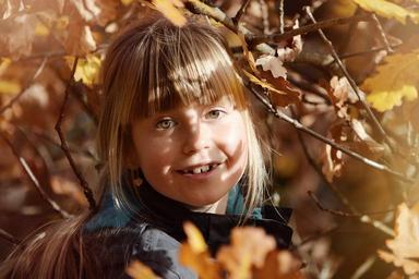 Keywords: child girl face blond tree leaves aesthetic nature autumn branches