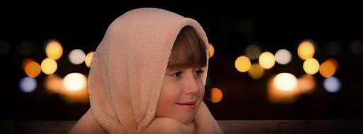 Keywords: child girl face portrait night dark road autos car lights bokeh