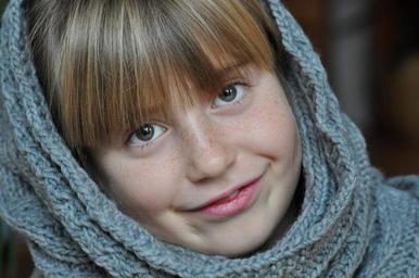 Keywords: child girl face smile satisfied eyes look