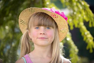 Keywords: child girl hat summer out nature blond smile childhood close person human portrait