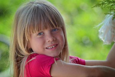 Keywords: child girl human person face blond long hair milk teeth view portrait