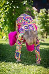 Keywords: child girl out nature summer play jump hop in motion in action movement frolic blond human person grass in the green childhood