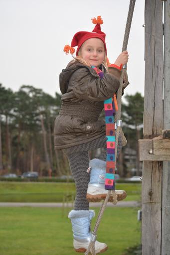 Keywords: child girl people winter clothing hat bones scarf climbing