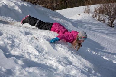 Keywords: child girl winter snow slip head forward downhill fun person human