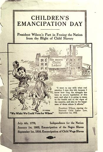 | Keywords: newspaper article child labor childlabor emancipation text Local Accession Number: 2367 Description: Wilson signed the National Child Labor Law on September 1, 1916. Photographer: Unknown Source: Unknown Size: 8x10 Medium: Print, Black and White Date: 1916? Local Accession Number: 2367 Description: Wilson signed the National Child Labor Law on September 1, 1916. Photographer: Unknown Source: Unknown Size: 8x10 Medium: Print, Black and White Date: 1916? | ||||