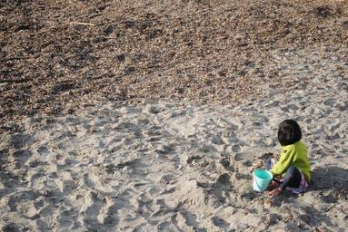 Keywords: child playing in sand little girl girl child sand childhood little summer sea kid vacation people coast ocean water happy young toddler