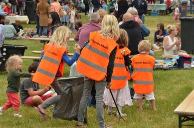 Keywords: child waste clean up cleaning clutter troop party people
