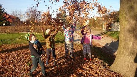Keywords: children autumn foliage sunny happy fun