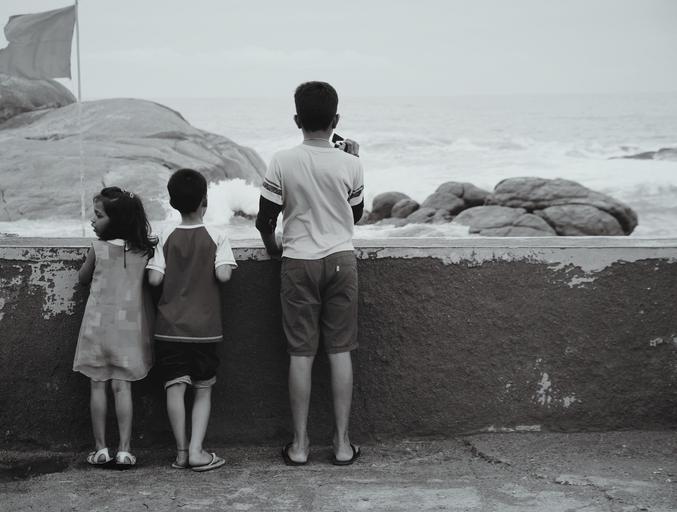 Keywords: children beach siblings black and white monochrome black white vacation water people child young ocean together kid brother boy childhood lifestyle little outdoor girl leisure holiday sister shore friends twins coastline family summer