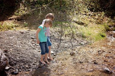 Keywords: children girl bach water nature explore