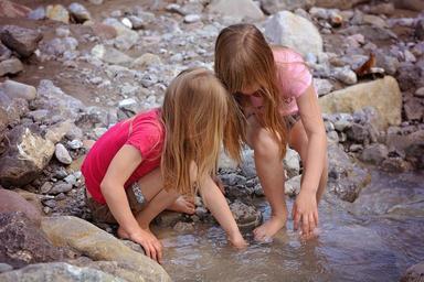 Keywords: children girl human personal water bach stream bed explore barefoot nature out