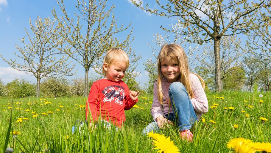 Keywords: children meadow summer play pick flowers out landscape grass green cute nature girl child flower meadow boy joy human sunshine blond spring sun