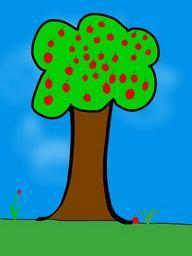 Keywords: children picture apple tree tablet cartoon apple sky meadow comic