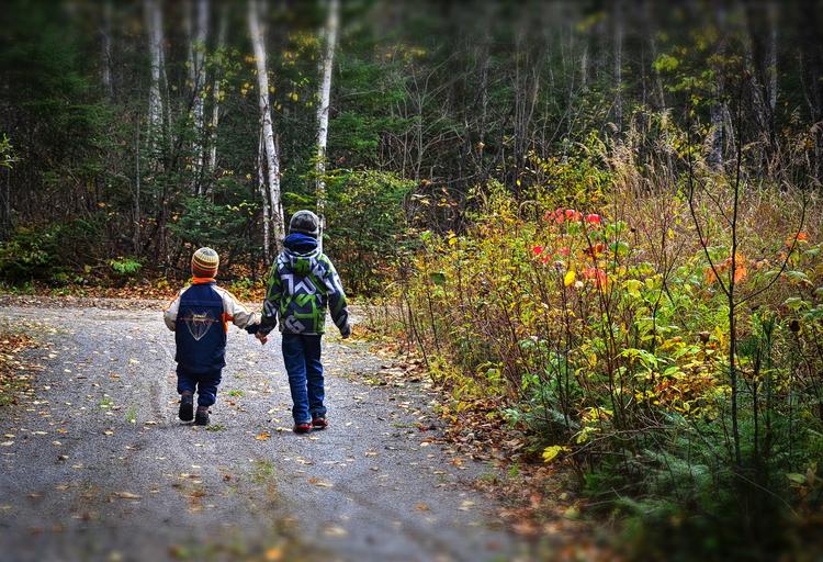 Keywords: children promenade autumn landscape nature fall colors leaves colorful wood québec