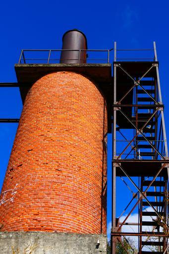 Keywords: chimney industry fireplace brick tower old stairs red orange factory building