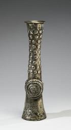 | Keywords: Chimú - Libation Vessel (Qero) - Walters 2009205 - Back.jpg The qero was the principal ritual libation vessel among the peoples of ancient Peru Bolivia and northern Chile This distinctive vessel form has ancient origins but became particularly prevalent during the Early Intermediate Period 100-600 CE This dynamic time witnessed socio-political intensification and an increase in the numbers of political elites throughout the Andes with an interconnected multiplication of aristocratic ceremonial events that emphasized hierarchy and authority The ritual consumption of chicha maize beer the mildly alcoholic beverage traditionally served in qeros was integral to these politically charged social events This libation vessel diverges from the typical qero's beaker form The precious metal material also segregates its from the usual ritual drinking vessel made of clay or wood The Chimú qero is unusually tall and embellished with a frontal face AD 1000-1470 Late Intermediate silver alloy cm 42 9 11 1 11 8 accession number 2009 20 5 80160 Ron Messick Fine Arts Santa Fe New Mexico date and mode of acquisition unknown John G Bourne 1990s by purchase Walters Art Museum Gift of John Bourne 2009 place of origin North Coast Walters Art Museum license Metalware beakers Beakers drinking vessels metalware Pre-Columbian art in the Walters Art Museum Chimu metalwork Libation vessels Media contributed by the Walters Art Museum needs category review Ceremonial vessels |