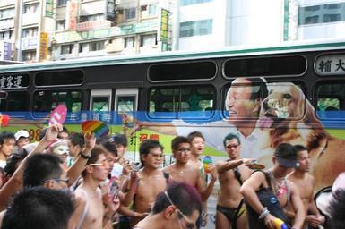 | Keywords: Chin Shih-chieh and WATERBOY on Taiwan Pride 2005.jpg Chin Shih-chieh and WATERBOY on Taiwan Pride 2005 Actor Chin Shih-chieh's picture was on the bus advertisement 2005-10-01 15 04 52 Zhongxiao East Road Taipei city Taiwan Photo by AT 2005-10-14 own assumed Atinncnu Taiwan Pride 2005 |