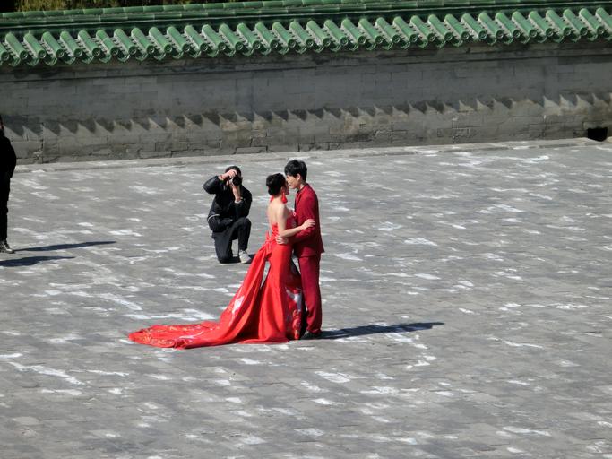 Keywords: china beijing wedding bride and groom love pair togetherness red asia center point of the earth wedding dress marriage photographer