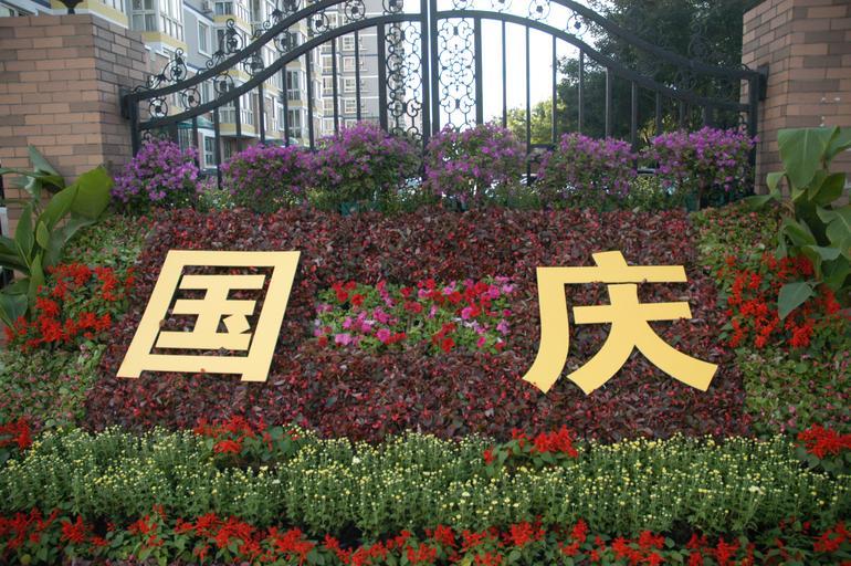 Keywords: China's 60th birthday floral design.JPG en Floral sign celebrating China's 60th birthday Beijing China Own Scott Meltzer 2009-09-13 Beijing Floral inscriptions Birthday flowers Design of China Flower beds