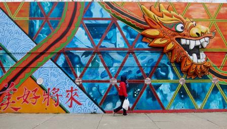 Keywords: Section of the Chinatown Centennial Mural, a project of the Chicago Public Art Group. Artists: Andy Bellomo & Bernard Williams chicago chicagopublicartgroup cpag chicagochinatown murals streetphotography