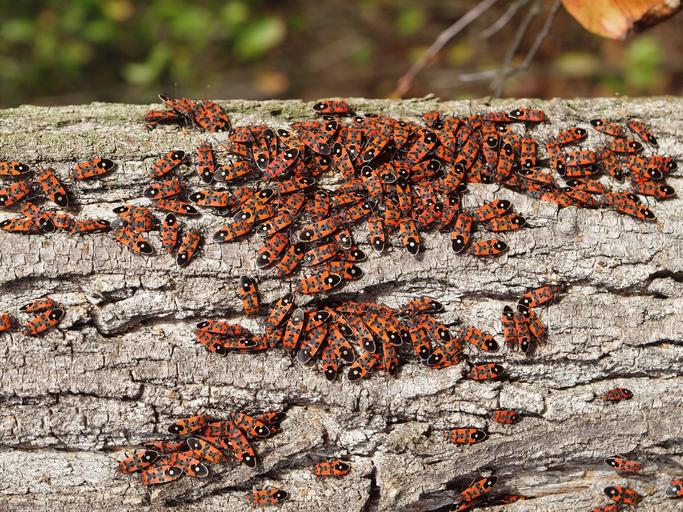 Keywords: chinch bugs insect animal nature forest autumn wood log beech mountain arthropod red