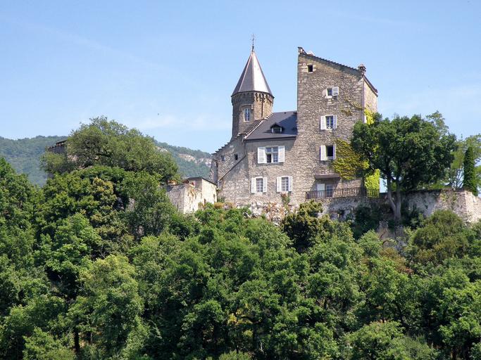 Keywords: chindrieux france castle architecture historic landmark forest trees sky clouds summer spring scenic landscape