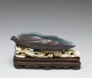 | Keywords: Chinese - Brushwasher in the Form of a Leaf - Walters 491212 - Side A.jpg Brush-washers for removing excess ink are essential tools in the traditional art of Chinese calligraphy and painting These functional objects were often made into beautiful works of art through exquisite design and the use of precious materials such as porcelain ivory jade and agate This ceramic brush-washer made in the form of a leaf rests on a delicate ivory and wood base century 18 19 glazed stoneware; stand ivory wood cm 12 4 accession number 49 1212 9204 William T / Henry Walters Collection Baltimore date and mode of acquisition unknown Walters Art Museum Henry Walters Acquired by William T or Henry Walters place of origin Jiangsu Chiang-su China Walters Art Museum license Chinese ceramics in the Walters Art Museum Brush washers Sculptures of leaves Chinese stoneware Ceramics of the Qing Dynasty |
