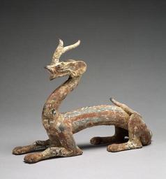 | Keywords: Chinese - Dragon - Walters 492425 - Profile.jpg Placed in a tomb a dragon provided a means to get to heaven But ceramic dragons were also modeled in times of drought When the dragon appears then wind and rain arise to escort him century 4 5 earthenware paint cm 25 7 7 3 accession number 49 2425 33988 Edward L Brewster Pikesville Maryland ProvenanceEvent Walters Art Museum 1977-09 gift Gift of Mr and Mrs Edward L Brewster 1977 Netsuke Miniature Sculpture of Japan place of origin China Walters Art Museum license Netsuke Miniature Sculpture of Japan Chinese ceramics in the Walters Art Museum Sculptures of dragons in China Chinese earthenware 4th-century sculptures |