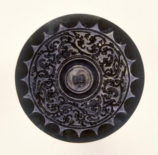 Keywords: Chinese - Mirror with the Character "Mountain" in the Four Directions - Walters 542884.jpg This mirror is decorated with four images of the characeter shan or mountain arranged so that they mark the four cardinal directions The background is decorated with stylized cloud forms century 4 3 BC bronze Diam cm 11 4 accession number 54 2884 38909 Laurance and Isabel Roberts Baltimore date and mode of acquisition unknown Walters Art Museum Gift of Laurence and Isabel Roberts 1995 place of origin China Walters Art Museum license Art of China in the Walters Art Museum Media contributed by the Walters Art Museum needs category review Bronze mirrors of the Warring States period |