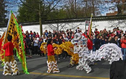 Keywords: Chinese New Year 07.jpg Chinese New Year parade 2007 Vancouver BC The background is the wall of Dr Sun-yat Sen Park Chinatown Vancouver Chinese New Year 2007-02-18 own assumed Bobanny