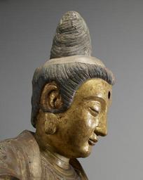 | Keywords: Chinese - Seated Guanyin (Kuan-yin) Bodhisattva - Walters 25256 - Detail C.jpg This late Ming dynasty dry-lacquer sculpture is an image of the bodhisattva Guanyin an enlightened being venerated in Chinese Buddhism as an embodiment of compassion Called a Water-moon Guanyin or Guanyin sitting in Royal Ease this theme and its iconography derive from textual inspiration found in the Avatamsaka Sutra the central text of the Hua-yen school of Buddhism and indigenous Chinese traditions The dry lacquer technique was popular but examples of this size and degree of refinement are rare late 14th-15th century dry lacquer gold and paint cm 137 2 78 7 58 4 accession number 25 256 4483 C T Loo Co Paris Doris Duke October 7 1937 by purchase Doris Duke Charitable Foundation Walters Art Museum Gift of the Doris Duke Charitable Foundation's Southeast Asian Art Collection 2006 place of origin China Walters Art Museum license Seated Guanyin - Walters 25256 |