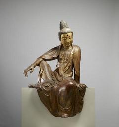 | Keywords: Chinese - Seated Guanyin (Kuan-yin) Bodhisattva - Walters 25256 (2).jpg This late Ming dynasty dry-lacquer sculpture is an image of the bodhisattva Guanyin an enlightened being venerated in Chinese Buddhism as an embodiment of compassion Called a Water-moon Guanyin or Guanyin sitting in Royal Ease this theme and its iconography derive from textual inspiration found in the Avatamsaka Sutra the central text of the Hua-yen school of Buddhism and indigenous Chinese traditions The dry lacquer technique was popular but examples of this size and degree of refinement are rare late 14th-15th century dry lacquer gold and paint cm 137 2 78 7 58 4 accession number 25 256 4483 C T Loo Co Paris Doris Duke October 7 1937 by purchase Doris Duke Charitable Foundation Walters Art Museum Gift of the Doris Duke Charitable Foundation's Southeast Asian Art Collection 2006 place of origin China <gallery> File Chinese - Seated Guanyin Kuan-yin Bodhisattva - Walters 25256 jpg </gallery> Walters Art Museum license Seated Guanyin - Walters 25256 |